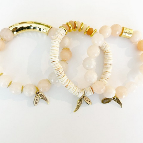 OMI beads are made by Nashville based jewelry designer Joy OMI Walling. Joy's vision was to create a simple piece of jewelry for every age woman to wear day or night. The bracelets are made with semi-precious stones and charms that give positive energy and good vibes. All of her designs are made with love in Tennessee.